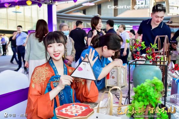 比如,卡萨帝在当天的思享荟现场,身着汉服的工作人员,搭配现场丝竹演奏、蜀锦织造、吹糖人等古典生活再现,将到场人群拉回到曾经「扬一益二」的成都。旗下高端家电,则打破传统品类陈列方式,以生活场景的状态,呈现出卡萨帝对当前高端中国家庭生活方式的思考与回应。