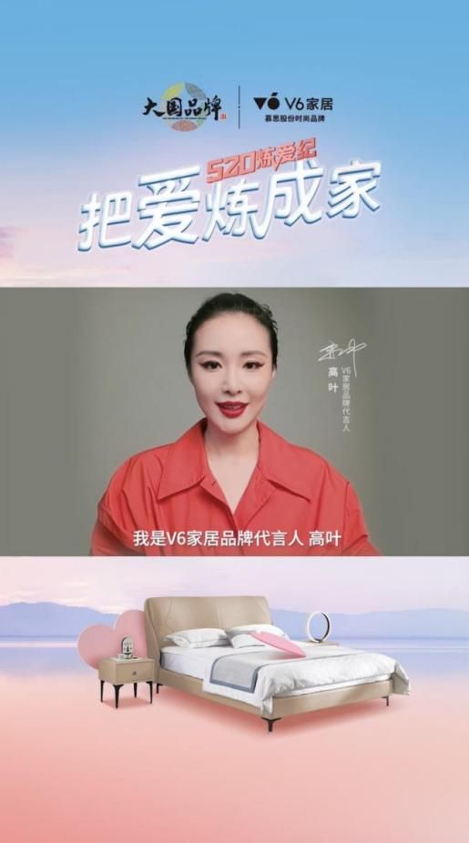 在大家居升级的市场形势下,慕思股份V6家居近两年接连完成了产品和店态的升级迭代,以及研发、生产、系统、供应链等一系列定制生态的建立的几级跳,悄然完成“大家居”赛道转型。站在全新的品牌发展阶段,V6家居不仅在洞悉目标群体需求上找准“时尚生活方式品牌”定位,还通过品牌跨界、签约代言人等动作实现品牌形象焕新。近日,V6家居签下高热度女演员高叶,以时尚品牌形象升级和年轻化营销为重点,在大家居赛道迈向新高度。