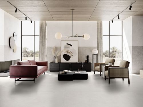 传统的客厅与餐厅有明显的边际感,总会想着用隔断将空间隔开,早已不再适应年轻人多样化的生活需求。其实将客厅与餐厅两个空间结合,做成开放式的设计,可以让整体空间更加的通透开阔。地面选用JF-F157510-002,低调沉稳的色彩纹理,让空间增添沉稳与恬静,客餐厅一体化通铺,使得空间统一感强,舒适度有一定的提高,对于小户型来说,客厅一体化能避免空间小带来的压抑感哦。