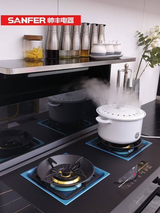 中国胃离不开烟火气十足的中式美食,可是葱爆、红烧、快炒、油炸等多种美味的烹饪手法总是伴随着“油烟袅袅”,肆无忌惮地侵害着我们的身体健康,有一个吸油烟高手,可以彻底解决这种困扰,它就是帅丰T1-7B蒸烤一体集成灶,全新升级斑彩螺静音风道5.0,19m³/min的超大风量,可以达到1秒瞬吸,从此告别油烟扑脸。同时更低风阻的畅行风道结构,能高效优化气流轨迹,既能吸得净,也能排得畅,静享好食光。这样用高达5.2kW强劲大火力的硬核太阳火炉头进行爆炒时也丝毫不必担忧油烟问题。完全上进风炉头,不仅补给空气更充足,还能使火力更集中,燃烧更充分,让你的美食爆发诱人香气,令人垂涎欲滴。