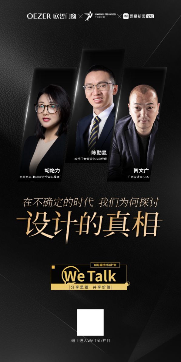 本期网易家居重磅栏目《WE TALK》,网易家居&网易设计全国总编辑胡艳力对话OEZER欧哲门窗营销中心总经理陈勤显先生和广州设计周CEO贺文广先生,深入解读《设计的真相》的成功秘钥以及未来布局。