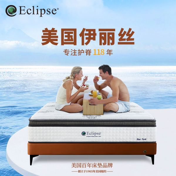 美国百年品牌Eclipse伊丽丝床垫,百年沉淀,护脊先驱,本次伊丽丝床垫品牌全线升级,并隆重推出:经典床垫系列,澳洲原装进口床垫系列,智能床垫系列,儿童床垫系列以及配套的真皮软床系列。