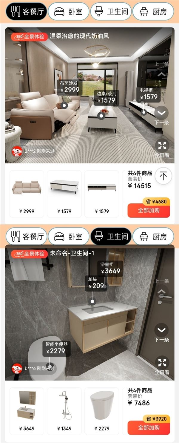 为了满足消费者高品质、多样化的焕新家需求,此次京东联合建材、家具、家电等品类知名品牌组建起京东免费设计CP联盟,打造家电家居一站购的配套解决方案。恒洁、Duravit、大白、TOTO、顾家、四季沐歌、摩恩、箭牌、浪鲸、松下、奥普、雷士、TCL、西顿、九牧、欧琳、日丰、芝华仕、林氏、全友、顾家、慕思、曲美、尖叫设计、黑白调、傲风、海尔、海信、方太等品牌,贴合时下流行家装风格,甄选出高人气、高性价比爆款,为消费者搭配个性化的VR场景购方案。