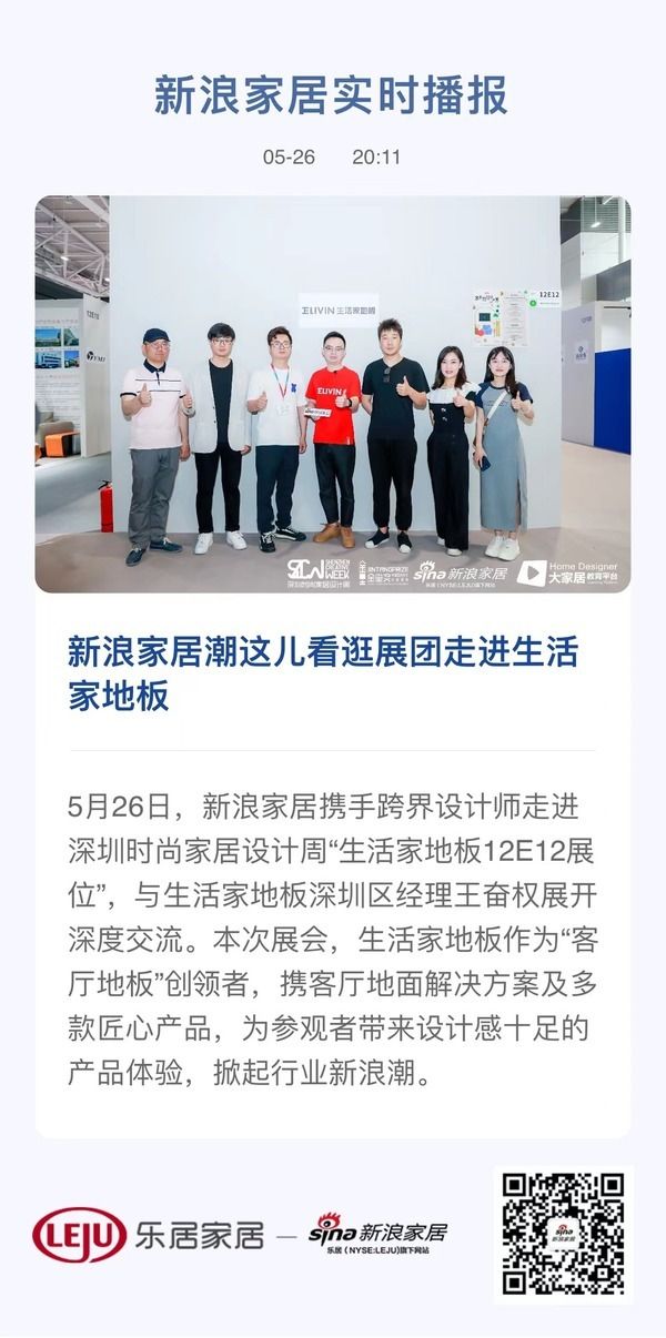 5月26日,新浪家居携手跨界设计师走进深圳时尚家居设计周“生活家地板12E12展位”,与生活家地板深圳区经理王奋权展开深度交流。本次展会,生活家地板作为“客厅地板”创领者,携客厅地面解决方案及多款匠心产品,为参观者带来设计感十足的产品体验,掀起行业新浪潮。
