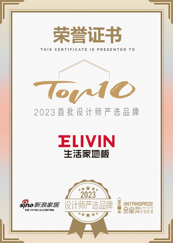本次通过获授“2023设计师严选品牌TOP10”证书,生活家地板得到了来自行业设计师以及众多产业同仁的高度认可,也向消费者端有效扩大了其品牌影响力的辐射范围,以更充足的动力鞭策自身不断前行。金堂奖全国联盟与新浪家居也希望未来能通过“设计师严选品牌TOP10”的评选活动,为更多优质家居品牌提供展示舞台,为消费者美好家居生活的实现提供指引,也为家居产业的高质量发展提供源源活力。