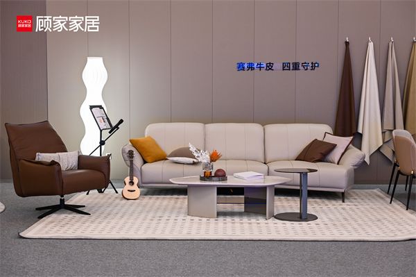 此次荣获2023质点奖最佳创新制造奖金奖的9626自由岛真皮沙发,采用了顾家自主研发的创新性面料——赛弗牛皮,顾家通过对用户生活需求的深度调研,在真牛皮皮胚上增加了一层透明硅胶树脂的防护层,让牛皮面料更加坚韧耐用、色泽持久,并且更抑菌环保。 给用户带来便捷舒适的产品体验,在顾家展馆现场也深受众多大咖嘉宾的认可。
