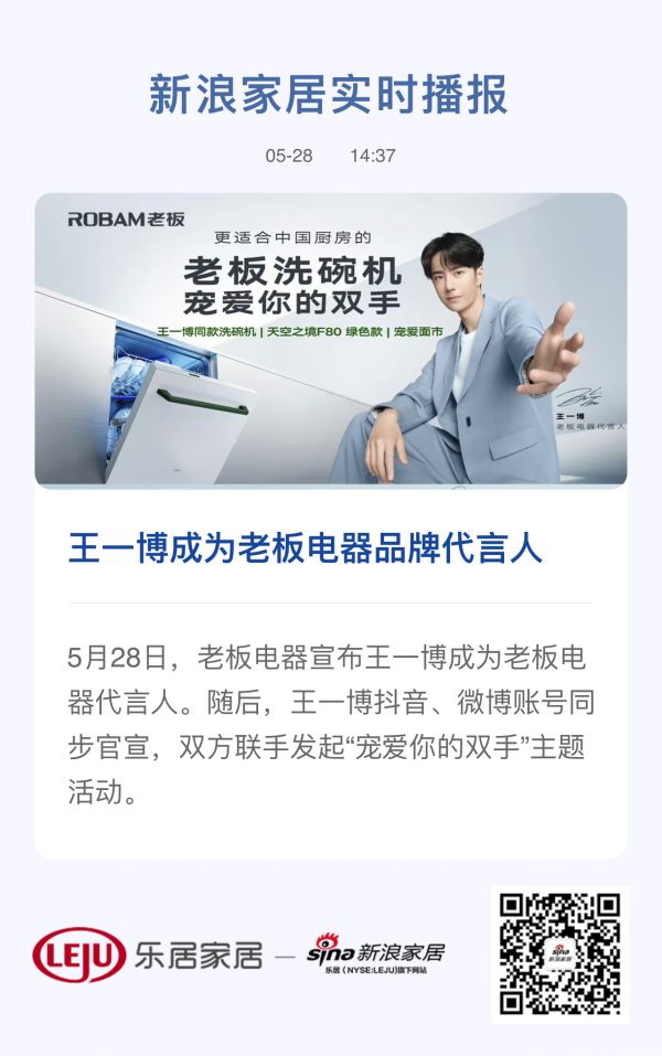 5月28日,老板电器宣布王一博成为老板电器代言人。随后,王一博抖音、微博账号同步官宣,双方联手发起“宠爱你的双手”主题活动。