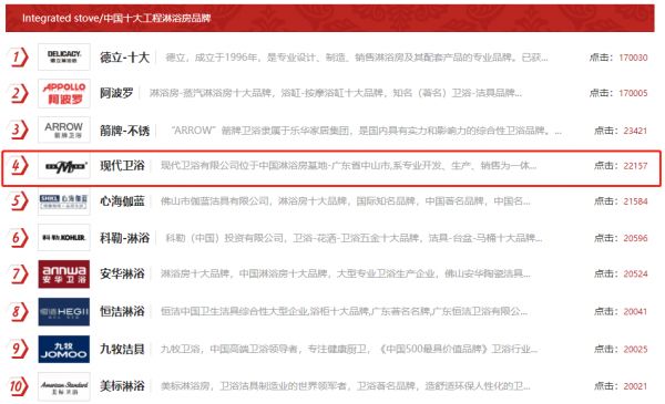 现代卫浴淋浴房凭借其在渠道优势、产品特色、销售规模、行业份额占比、消费者口碑调查问卷搜集等方面的突出表现,荣获“中国十大工程淋浴房品牌”的殊荣,品牌底蕴可见一斑。