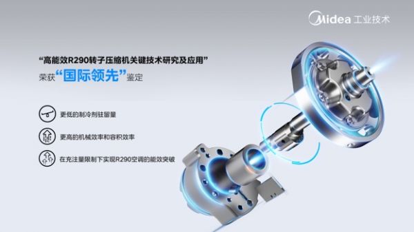 在R290绿色环保冷媒的替代进程中,空调器总充注量的约束带来系统能效提升难题,GMCC美芝从降低压缩机的制冷剂驻留量、提高压缩机的容积效率、提高压缩机的机械效率的维度提出三大创新技术,实现R290转子压缩机的单体高效化和制冷剂驻留的减量化,对节能减排、绿色可持续发展至关重要。
