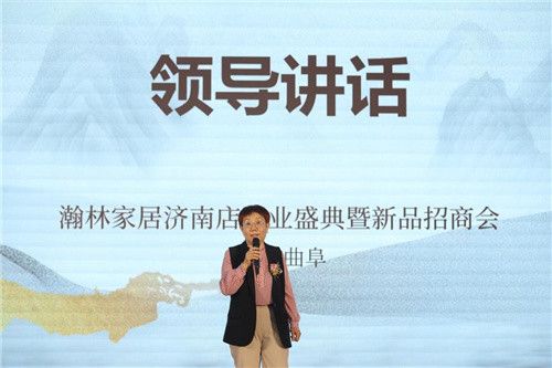 山东省家具协会执行会长牛广霞致辞,她表示瀚林家居在齐总的带领和全体员工的精诚努力下,经过多年以来的发展,已经成为在山东省乃至全国范围内的知名家居品牌。她指出家具行业是常青产业,未来发展前景广阔,近年来随着消费群体以及消费需求的改变,对家居产品的设计、品牌以及服务有了更高的要求,面对新一轮的机遇和挑战,我们家具人要顺势而为,顺势而上,才能在市场竞争中脱颖而出,打造出品牌优势,赢得消费者青睐。