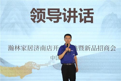 山东瀚林家居股份有限公司董事长齐健致辞,他首先对各位领导嘉宾和经销商朋友的到来表示热烈的欢迎和衷心的感谢,他表示瀚林家居成立近三十年来,已在全国拥有近百家门店。瀚林家具始终专注于弘扬儒家文化和原创独立品牌建设,以优质的产品和服务,为消费者提供舒适、有品位、有调性的东方儒家文化家居美学空间。