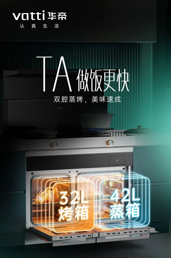 能在短时间内摸清形势,完成渠道抢占,华帝集成灶除了背靠华帝这棵大树,有良好的战略导向、强大的品牌实力外,还和华帝集成灶洞悉用户需求、持续加码研发有脱不开的关系,例如其王牌产品华帝鸳鸯集成灶,就是华帝集成灶深入了解消费者的需求后,诞生出的双腔双灶均优秀的“多维之王”。华帝鸳鸯集成灶顺应当下快节奏高效需求,以黄金比例分出蒸烤双腔,并进一步融合空气炸功能,其烟机、灶具、蒸烤炸模块参数和性能,均能称得上是同类产品的标杆。在近期活动助推下,快速抢占双腔市场,深入扎根消费者心智,获得广泛好评。