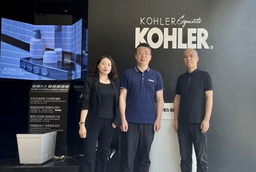 图左/昆明协科建材科勒卫浴营销总监鲁明琦、总经理邓胜文和设计师马黎明。