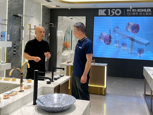 图左/设计师马黎明和昆明协科建材科勒卫浴总经理邓胜文。