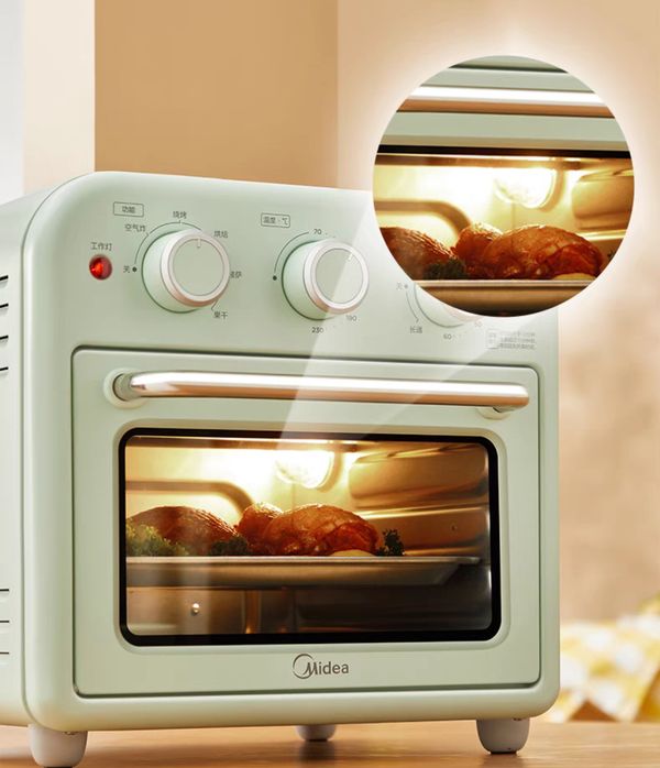 “这个烤箱不是很大,不占地方,又能满足需求,恰好够一个人吃早饭烤一片吐司2个蛋挞……”