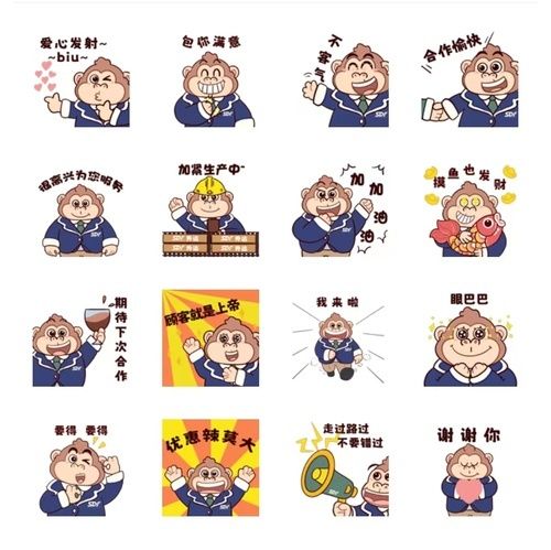 这套表情包共16个动画表情,每个都附上了恰到好处的描述性文字,搭配软萌可爱的“升达金刚”动漫形象,其使用场景涵盖了工作和生活,更特别的是这套“升达金刚”表情包还有“包你满意”、“加紧生产”、“为您服务”、“下次合作”等符合销售语境的表情包,让终端导购可以尽情使用。
