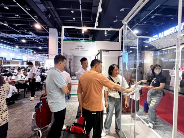 展馆简洁亮眼的外观吸引了不少的观众驻足参观现场工作区人员在细心地为大众讲解着某个情景区整体风,或简约、或轻奢、或雅致、或田园,以此更近距离的感受到了企业强大的整装实力及包容万象整装的姿态。