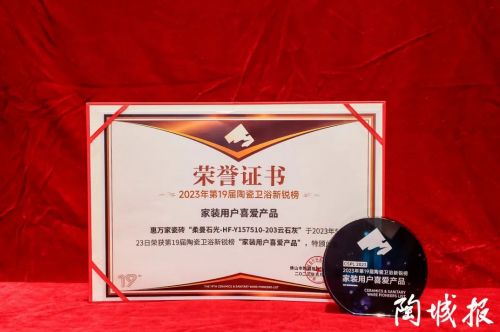 荣耀时刻 惠万家瓷砖荣获新锐榜家装用户喜爱产品奖