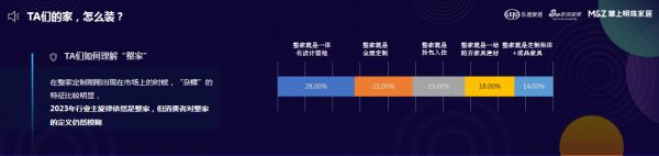 “整家不是全品类产品的简单组合,而是基于设计师或品牌方对消费者居住需求的整体洞察,以设计为核心,提出整体居住解决方案”,这是在掌上明珠与新浪家居联合制作的《整家实力派》行业人物访谈TVC里,资深媒体人、新浪家居西南区副总经理王瑾对整家的相对清晰、准确的定义。而在《2023新青年整家设计消费趋势报告》前期调研过程中,把“什么是整家”这一话题抛给消费者,我们得到的答案令人“失望”——