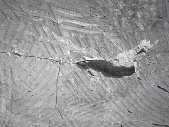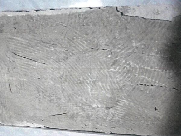从脱落后的砖背看到,脱模粉未清理干净,残留明显。脱模粉会降低瓷砖胶与瓷砖的之间的粘结力。如未清理,背胶滚涂后难以形成连续膜,无法发挥性能。