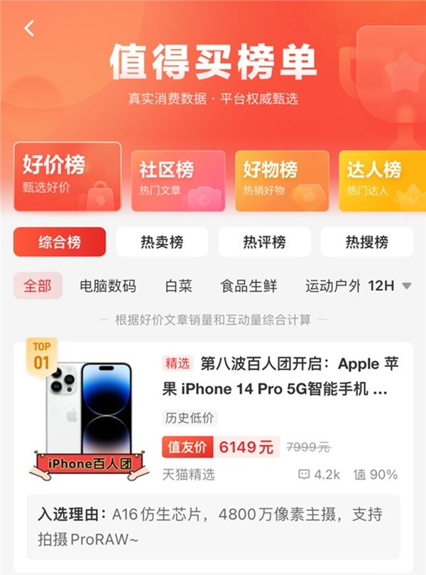 此次618开门红期间,消费者展现出充沛的消费热情,大件换新需求高涨。截至6月1日中午12点,什么值得买站内GMV TOP5品类分别为手机通讯、大家电、电脑配件、电脑整机和住宅家具。在具体商品层面,iPhone14包揽了手机通讯品类GMV TOP5;华凌、海尔、索尼、小天鹅分别占据空调、冰箱、电视、洗衣机品类的GMV冠军;美的RX600 Pro热风烘干洗碗机、林内JSQ26-GD31燃气热水器、美的微霸系列4合1蒸烤箱一体机成为厨卫大电消费热品。