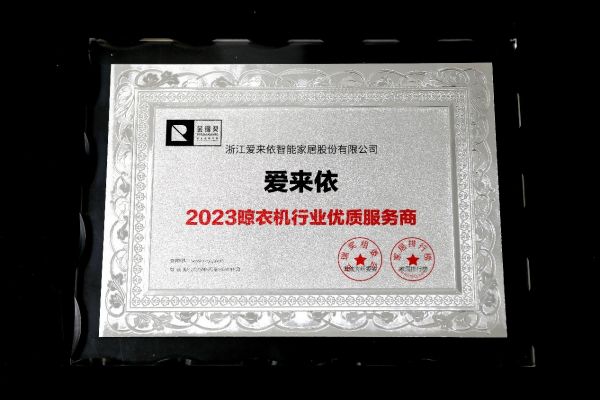 爱来依荣获“2023 年度晾衣机行业优质服务商”荣誉称号