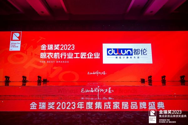 在金瑞奖2023年度品牌盛典上,都伦荣获中国晾晒品牌之声“2023年度晾衣机行业工匠企业”。