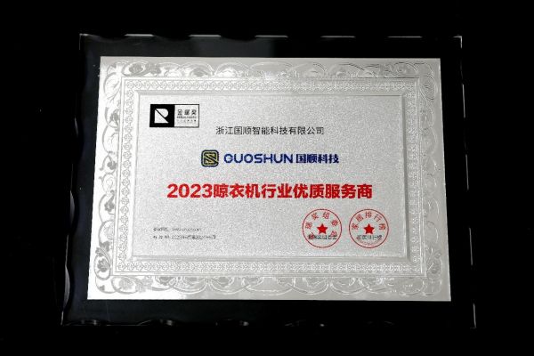国顺荣获“2023 年度晾衣机行业优质服务商”荣誉称号