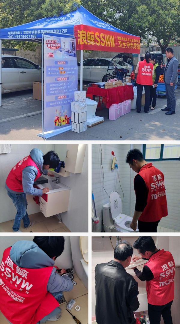 为了解决当下的消费痛点,浪鲸卫浴以“2小时快装+6大免费服务”为依托,重磅推出“卫浴管家 服务到家”焕新IP,先后举办了临沂、合肥两场活动;与此同时,浪鲸终端线下在广东江门、山东临沂、浙江仙居、江西泰和等城市陆续展开“走进社区——卫生间免费检修”公益活动,共计走访8个小区,服务客户数量达300+户,切实为用户解决系列卫浴空间的痛点,获得用户一致认可。