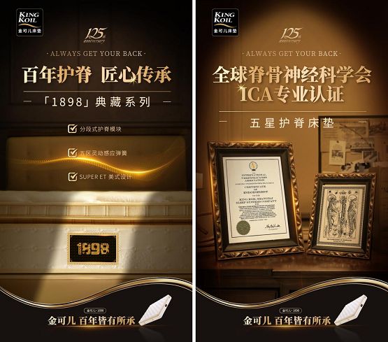 “1898”对金可儿来说是一个具有特殊意义的数字:正是在1898年,金可儿的创始人赛缪尔先生以制造更舒适健康的床具为目标,开创了一个跨越三个世纪的睡眠传奇。而这份不变的初心,连同金可儿百年历史、护脊弹簧之王、ICA专业认证等品牌发展的其他里程碑一起,被浓缩在了产品的金色床标中。可以说,“1898典藏款”的特别床标,既是记录着金可儿发展的重要符号,也承载了以典藏致敬经典的深意。