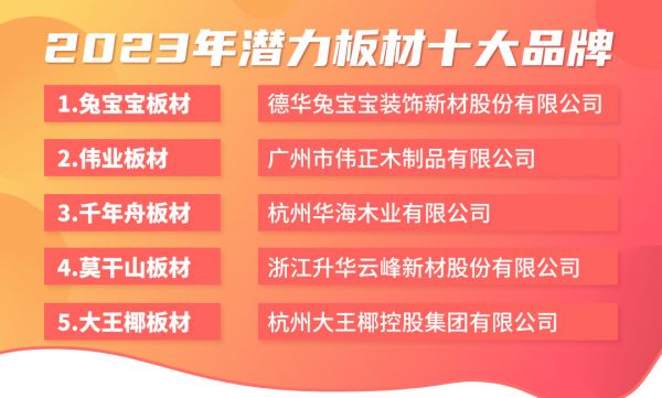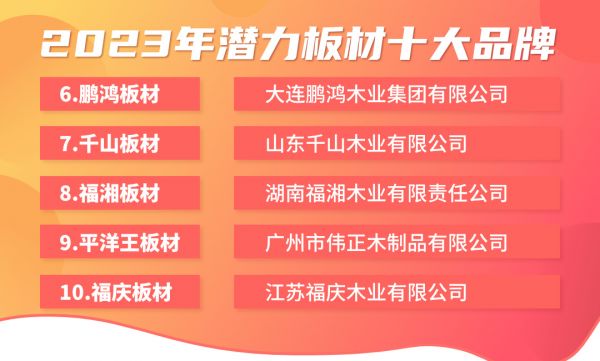 以上是入围详细榜单,入围的品牌或是品牌实力雄厚、或是生产工艺先进、或是消费者高认可度、或是强大的品牌影响力,都是业内极具发展潜力的优质板材品牌。以上榜单仅供参考。