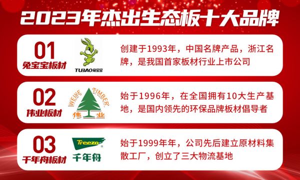 1、兔宝宝板材:创建于1993年,中国名牌产品,浙江名牌,是我国首家板材行业上市公司