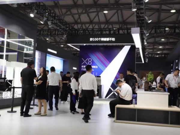 以此次占据火星人展台C位的全新一代X8集成灶为例,不仅具备飓风Turbo变频增压引擎,达到1200Pa最大静压,同时将电机功率升级至350W,预示着集成灶行业正式进入“3.5T超大马力时代”,让年轻人爱上做饭,从此再也不用担心油烟问题。