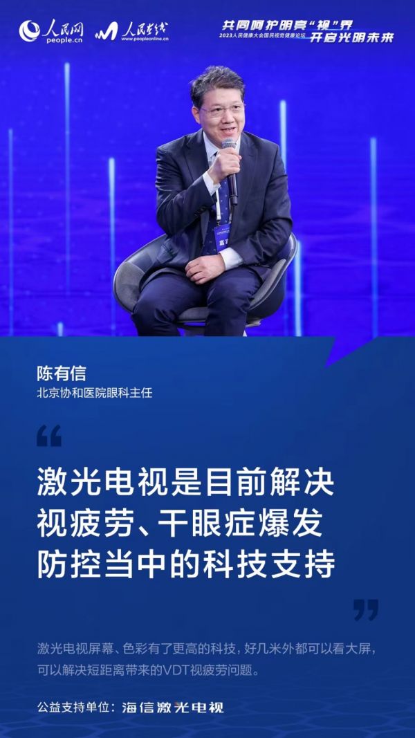 在谈及更加护眼的显示产品时,北京协和医院眼科主任陈有信对激光电视的护眼设计深表认可:“激光电视做得非常好,它将光反射到屏幕,而拥有更高科技的屏幕使画面的色彩、光强度、观影距离都合适,这种类型的电视及显示屏是我们目前解决视疲劳、干眼症爆发防控当中的科技支持。”