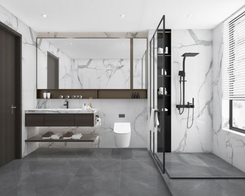 兴辉瓷砖I-FACE弗洛姆白&摩根石深灰打造的卫浴间