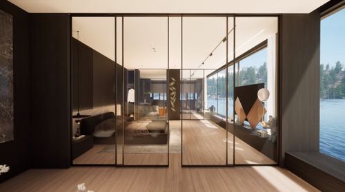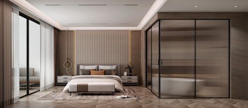 突破格局界限,提升空间美感。开放式浴室的设计,突破传统封闭的卫浴间格局,采用大面积的全景门连通彼此,让空间更通透明亮,视觉更开阔延伸。工艺与美学的糅合,最大化呈现和提升家居空间的设计美感。