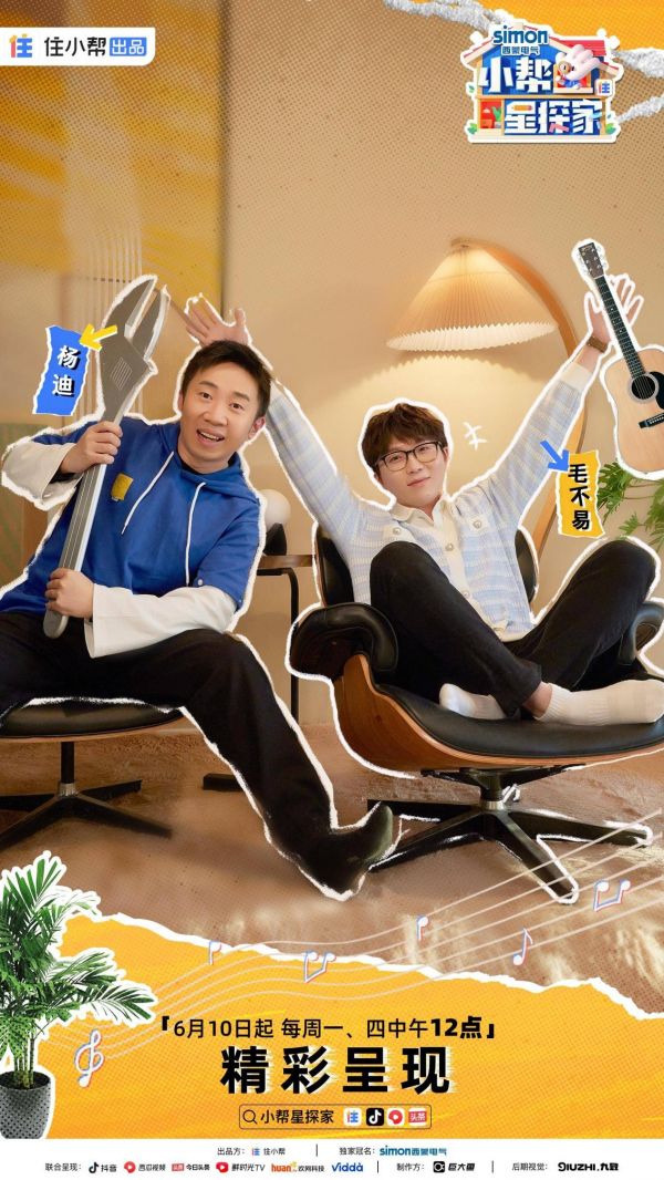 6月10日,首档明星居家社交微综艺《小帮星探家》上线。该节目由真实可靠的一站式家装家居服务平台住小帮出品,阵容集结幽默主持人杨迪、“跨界社恐歌手”毛不易、金句女王傅首尔、星星女神陈妍希、居住领域专家逯薇老师多位嘉宾。
