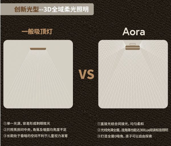 用户的体验是产品的底线,Aora智能吸顶灯旨在打造全域0暗角的空间光,为家庭成员带来不将就的家居体验。
