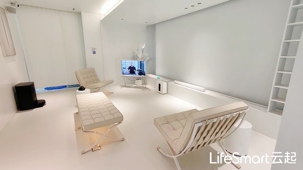 第一集装箱中,是LifeSmart云起的未来生活空间。明净雅致,摒弃所有繁琐的细节,拒绝不切实际的花哨,融合一贯的西方经典现代主义审美和更加柔和的东方风韵,形成极简却不冷淡,理智实用而又充满活力的视觉面貌。将舒适而充满活力的理想家放进集装箱,也是LifeSmart云起本年度展会的大胆尝试。