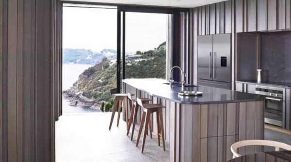 在悉尼北部海滩的悬崖之上,有一处建筑,房屋设计极具特色,从厨房和餐厅可直接通往面朝大海的木质平台,海滩的壮观景致尽收眼底。如何在欣赏室外美妙景色的的同时,也保证厨房风景独好?