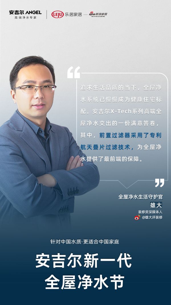 “追求生活品质的当下,全屋净水系统已慢慢成为健康住宅标配。安吉尔X-Tech系列高端全屋净水交出的一份满意答卷,其中,前置过滤器采用了专利航天叠片过滤技术,为全屋净水提供了最前端的保障。”