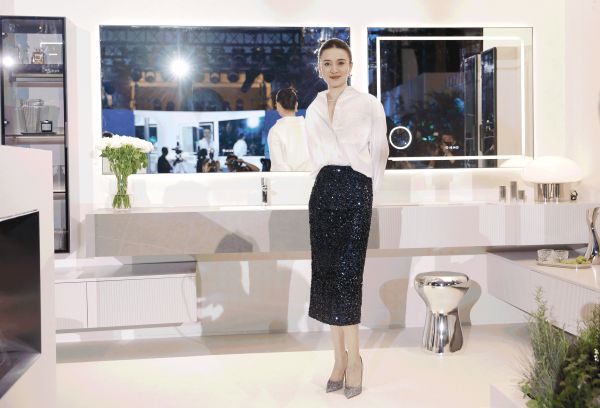 此次展会上,恒洁品牌代言人宋佳、品质生活设计师孟也、恒洁三方联名呈现的理想卫浴空间也正式登陆KBC。孟也老师以品质生活为灵感,为宋佳设计了一个拥有建筑、艺术、自然三种魅力的理想卫浴空间。空间中的奢适定制浴室柜,以全定制模式满足用户不同的空间需求,并提供高效有序的收纳功能。搭载悦颜智能镜、智能消毒烘干模块和智能小冰箱等多种实用功能,整体空间美学与实用性兼备。