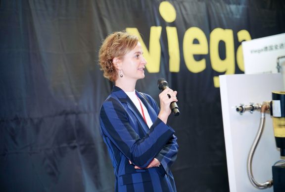 Sandra Bell博士介绍,德房家的目标是在2035年实现企业自身的碳中和,而这一目标将建立在德房家产品安全和舒适的基础之上。“没有人会用60度的水来洗澡,但在德国却要求热水供回水管路里的水不得低于55度,因为当水温高于55度时,细菌不容易滋生。但保持55度的水温需要消耗大量能源。德房家正在研发一种创新的超滤技术,这项技术能不断减少热水中的细菌总数,可以达到管道里的水保持在40~45度的温度的同时,但又不易滋生细菌。这将在维持管道里的水卫生健康的同时,同时显著降低能耗,能为环境的可持续发展做出贡献。”