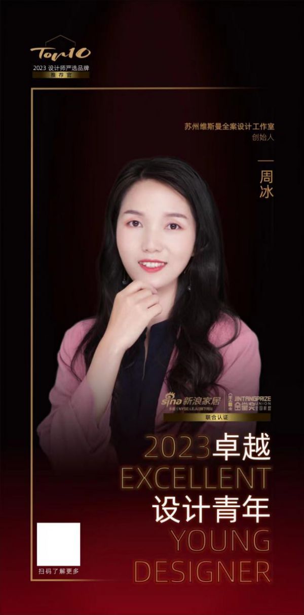 “2023卓越设计青年”由新浪家居和金堂奖全国联盟发起,依诺岩板瓷砖联合主办,是设计业界最具传播价值的年度先锋荣誉之一,其评审团成员由全国设计领域青年精英设计师组成,新浪家居与金堂奖联名认证,关注以设计驱动的产品力,发挥设计师服务价值,发掘有创意有故事的好设计。设计师周冰荣膺“2023卓越设计青年”称号。