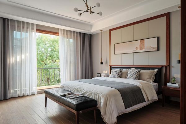 卧室木质触手生温,轻纱随风曼舞,窗外绿意醉人,卧室里的每一处细节都让人由衷地敞开身心,感受专属自我的悠闲之境,与家的放松。 素净的空间里静谧的时光缓缓流淌,冲淡一日的疲累。阳光穿过窗棂,糅合出光影错落的景致,同时洒落一室温暖。