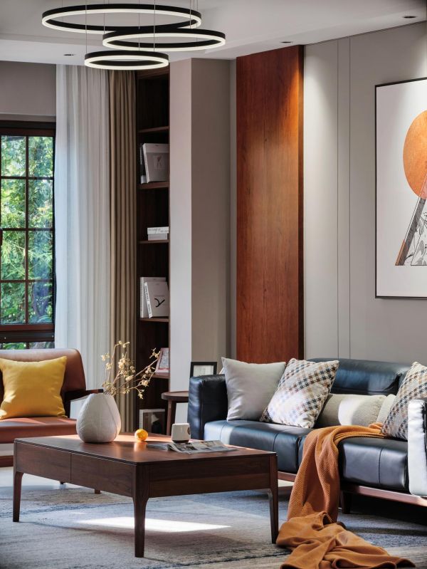 家的温度不只来源于光与色,更来自触手能即的切实感受。木质温润敦实,安全感满满;皮质与布艺柔软细腻,是温馨最直观的表达。