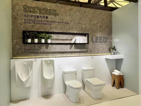 同时,卫浴建材作为建筑中主要能源消耗的一部分,对于推进绿色建筑具有重要意义。作为全球著名卫浴生产厂商,多年来,和成始终追求领先的节水性能和优异的冲水机能,助力客户满足绿色建筑标准。本次展会上,HCG和成卫浴展出了包括3.5LPF超节水单体马桶系列、1.9LPM节水型感应龙头系列、0.5LPM超节水小便斗系列在内组合的绿色建筑助力方案。