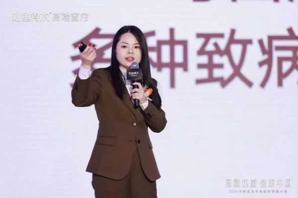 如鱼得水高端窗帘品牌总监-段娟娟分享了2023年品牌赋能战略,持续聚焦【高颜健康】击穿打透,产品从抗菌到高颜的全面升维。