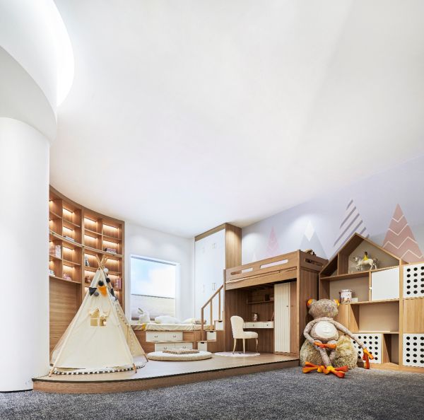 在这里,不仅为小朋友提供生活、学习和娱乐的功能性空间,同时,也将美克的美学DNA融入空间中,为小朋友提供潜移默化的美育教育。
