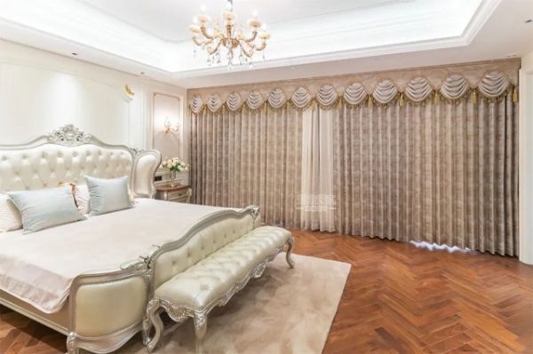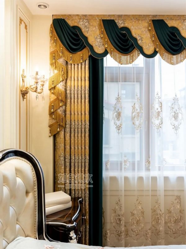 法式风格、欧式风格、美式风格的家居一般窗户比较大,窗帘的选择应该更具有质感,颜色与图案要求跟家具一样的华丽,沉稳。